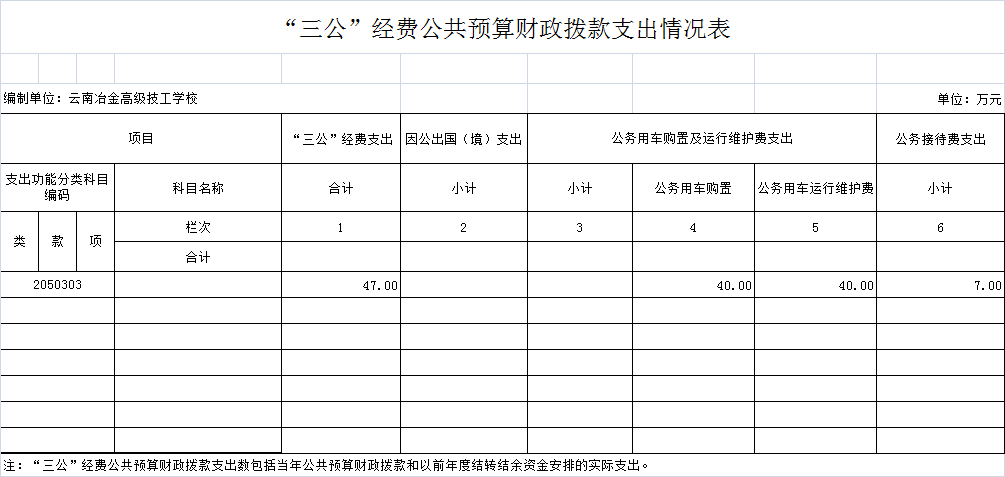 云南冶金高级技工学校“三公”经费预算情况说明